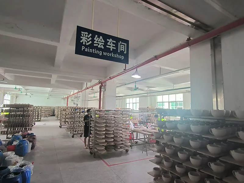 புஜியனில் உள்ள எங்கள் முக்கிய தொழிற்சாலை குவளைகள் (காபி மற்றும் தேநீர் கோப்பைகள்) மற்றும் மெழுகுவர்த்தி வைத்திருப்பவர்கள் உள்ளிட்ட உயர்தர பீங்கான் மேசைப் பாத்திரங்களில் நிபுணத்துவம் பெற்றது. புஜியன் என்பது பீங்கான் கைவினைத்திறனுக்கான மையமாகும். எங்கள் தொழிற்சாலை அதிநவீன உற்பத்தி கோடுகள் மற்றும் ஐஎஸ்ஓ-சான்றளிக்கப்பட்ட செயல்முறைகளைக் கொண்டுள்ளது, வடிவமைப்பது, மெருகூட்டுதல் மற்றும் துப்பாக்கிச் சூடு ஆகியவற்றில் துல்லியமாக உறுதிசெய்கிறது, செயல்பாட்டு மற்றும் அழகியல் ரீதியாக மகிழ்ச்சியான தயாரிப்புகளை உறுதி செய்கிறது.