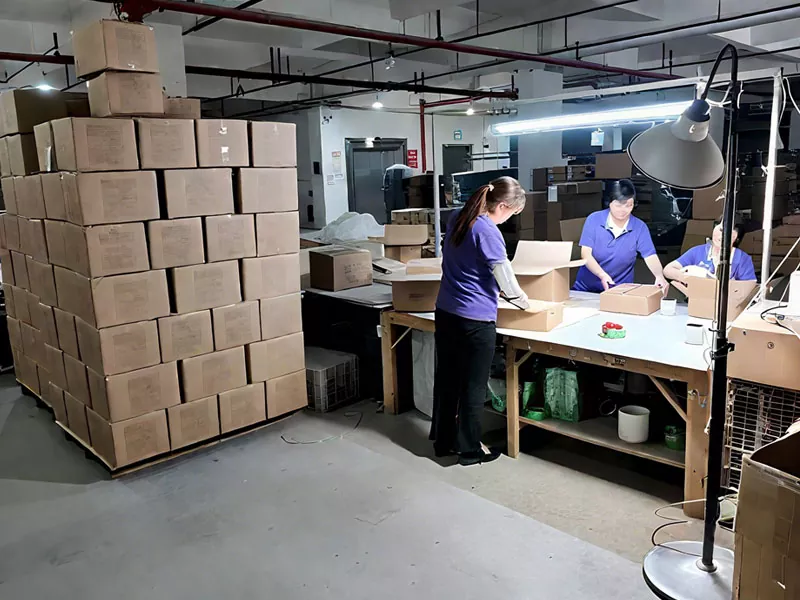 பேக்கேஜிங் மற்றும் ஷிப்பிங்கை எளிதாக்க, டோங்குவானில் உள்ள எங்கள் தலைமையகத்திற்கு அருகில் எங்கள் சொந்த பேக்கேஜிங் மையத்தை நிறுவியுள்ளோம். இந்த மையம் கண்ணாடி மெழுகுவர்த்திகள் மற்றும் டிஃப்பியூசர்கள் போன்ற உடையக்கூடிய பொருட்களுக்கான பேக்கேஜிங் தீர்வுகளில் நிபுணத்துவம் பெற்றது. தனிப்பயன் பெட்டிகள் மற்றும் லைனிங்ஸை நாங்கள் உருவாக்கலாம், மேலும் கண்ணாடி டிஃப்பியூசர்கள் மற்றும் அலங்கார மட்பாண்டங்கள் போன்ற பொருட்களைப் பாதுகாக்க சுற்றுச்சூழல் நட்பு பொருட்களைப் பயன்படுத்துகிறோம், போக்குவரத்தின் போது அவற்றின் பாதுகாப்பை உறுதி செய்கிறது.