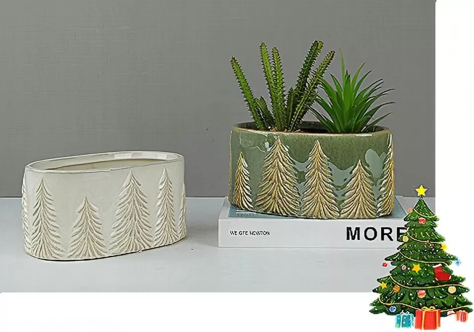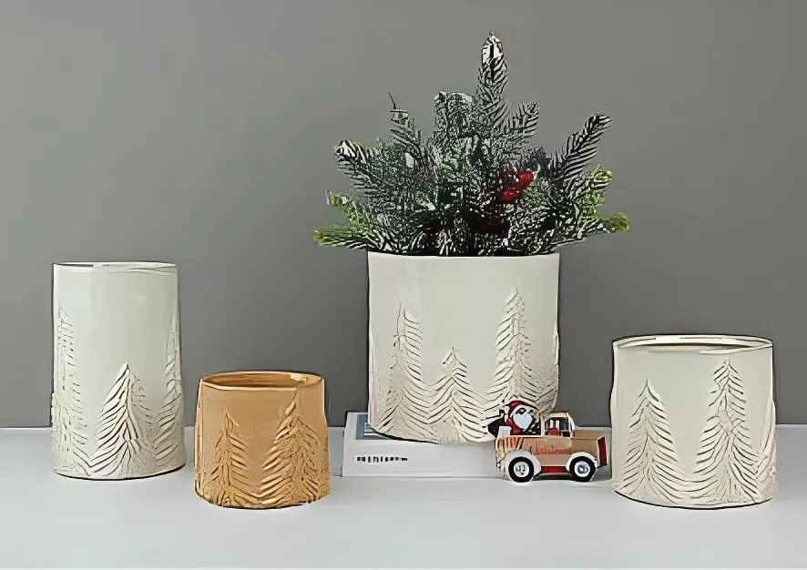BYF பொறிக்கப்பட்ட கிறிஸ்துமஸ் பைன் வாஸ் தொடரில், உன்னதமான எவர்கிரீன் ட்ரீ பொறிக்கப்பட்ட வடிவத்தைக் கொண்ட, உன்னிப்பாக கைவினைப்பொருளான பீங்கான் குவளைகள் மற்றும் பூந்தொட்டிகள் உள்ளன. சிறிய சதைப்பற்றுள்ள தோட்டக்காரர்கள் முதல் பெரிய ஸ்டேட்மென்ட் குவளைகள் வரை அளவுகள் உள்ளன, ஒவ்வொரு பகுதியும் உங்கள் வீட்டு அலங்காரத்திற்கு இயற்கையான, பண்டிகை அழகை சேர்க்க வடிவமைக்கப்பட்டுள்ளது. பணக்கார பச்சை மற்றும் மிருதுவான வெள்ளை வண்ண விருப்பங்கள், பெரும்பாலும் சிவப்பு பெர்ரி உச்சரிப்புகள் மற்றும் "பனி" அலங்காரத்தின் அடுக்குடன் இணைக்கப்பட்டுள்ளன, இந்த தொடரை ஒரு சூடான மற்றும் அழைக்கும் விடுமுறை சூழ்நிலையை உருவாக்குவதற்கான சரியான மைய புள்ளியாக ஆக்குகிறது.