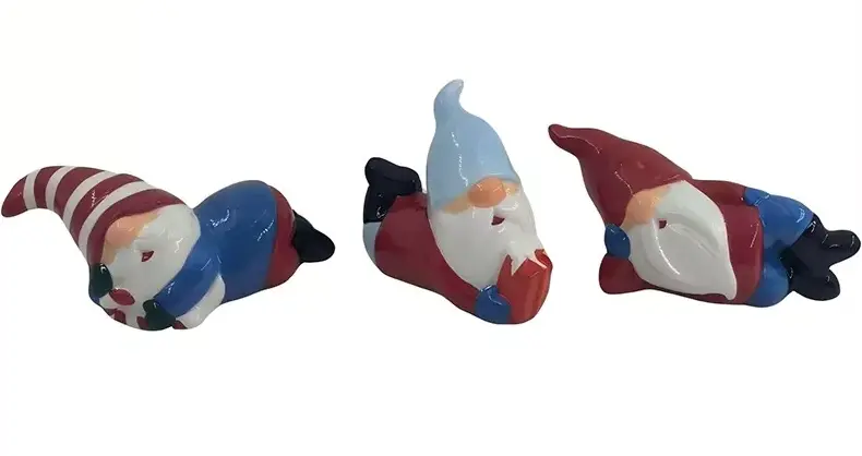 BYF இன் திருவிழா அலங்கார பொருட்கள் இரண்டும் அதிக வெப்பநிலையில் சுடப்படுகின்றன, இதன் விளைவாக கூட, பணக்கார வண்ணங்கள் மற்றும் ஒரு காம மெருகூட்டல். எங்கள் கைவினைஞர்கள் ஒரு தெளிவான, முப்பரிமாண விளைவை உருவாக்க மெருகூட்டலை மிகச்சிறப்பாக முடிக்கிறார்கள், கலை தரம் மற்றும் கைவினைத்திறன் இரண்டையும் காண்பிக்கின்றனர். கிறிஸ்மஸ் எல்ஃப் பீங்கான் ஆபரணங்கள்: கிளாசிக் கிறிஸ்துமஸ்-கருப்பொருள் கூறுகளுடன் வடிவமைக்கப்பட்ட, எல்ஃப் கதாபாத்திரங்கள் தெளிவாக சித்தரிக்கப்படுகின்றன. அவர்கள் சிவப்பு மற்றும் வெள்ளை கோடுகள் மற்றும் திட வண்ணங்கள் உட்பட பல்வேறு வண்ணங்களில் தனித்துவமான கூர்மையான தொப்பிகளை அணிந்துகொள்கிறார்கள், நீல மற்றும் சிவப்பு பிரதான ஆடைகளுடன் ஜோடியாக, ஒரு துடிப்பான மற்றும் பண்டிகை சூழ்நிலையை உருவாக்குகிறார்கள். ELF ஒரு விளையாட்டுத்தனமான வெளிப்பாடு மற்றும் நுணுக்கமாக விரிவான தாடி மற்றும் முக அம்சங்களுடன் சித்தரிக்கப்பட்டுள்ளது. பீங்கான் பொருள் மென்மையானது, காமமானது மற்றும் தொடுவதற்கு மென்மையானது.