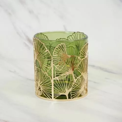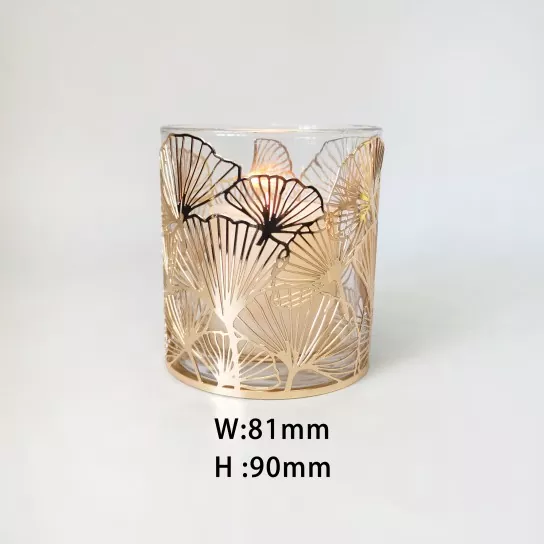 கோல்டன் ஜின்கோ இலை உலோக மெழுகுவர்த்தி வைத்திருப்பவர்
