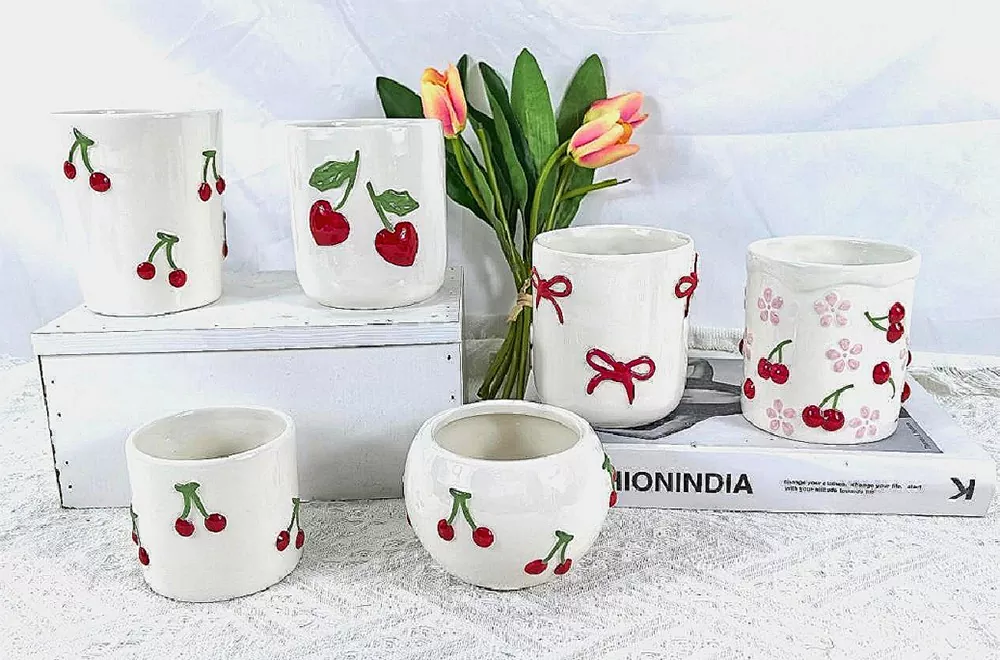BYF இன் சூப்பர் அடோரபிள் செராமிக் மெழுகுவர்த்தி ஜார் தொடரானது "சூப்பர் க்யூட்" வடிவமைப்பு பாணியுடன் கூடிய உயர்நிலை கையால் செய்யப்பட்ட பீங்கான் மெழுகுவர்த்தி ஜாடிகளைக் கொண்டுள்ளது. சிவப்பு செர்ரிகள், முப்பரிமாண வில் மற்றும் ஸ்ட்ராபெர்ரிகள் போன்ற உன்னதமான இனிப்பு கூறுகளை இந்த வடிவமைப்புகள் ஒரு மென்மையான மெருகூட்டல் மற்றும் மாறுபட்ட வடிவங்களுடன் இணைக்கின்றன. பாதுகாப்பான மற்றும் சுற்றுச்சூழலுக்கு உகந்த பொருட்களால் ஆனது, இது சிறந்த வெப்ப எதிர்ப்பைக் கொண்டுள்ளது மற்றும் நிலையான விக்ஸ் மற்றும் பல்வேறு மெழுகு தளங்களுக்கு கச்சிதமாக பொருந்துகிறது, இது உயர்தர மெழுகுவர்த்தி கொள்கலன் மற்றும் உங்கள் வீட்டு அலங்காரத்தை மேம்படுத்தும் கலை அலங்காரப் பொருளாக அமைகிறது.